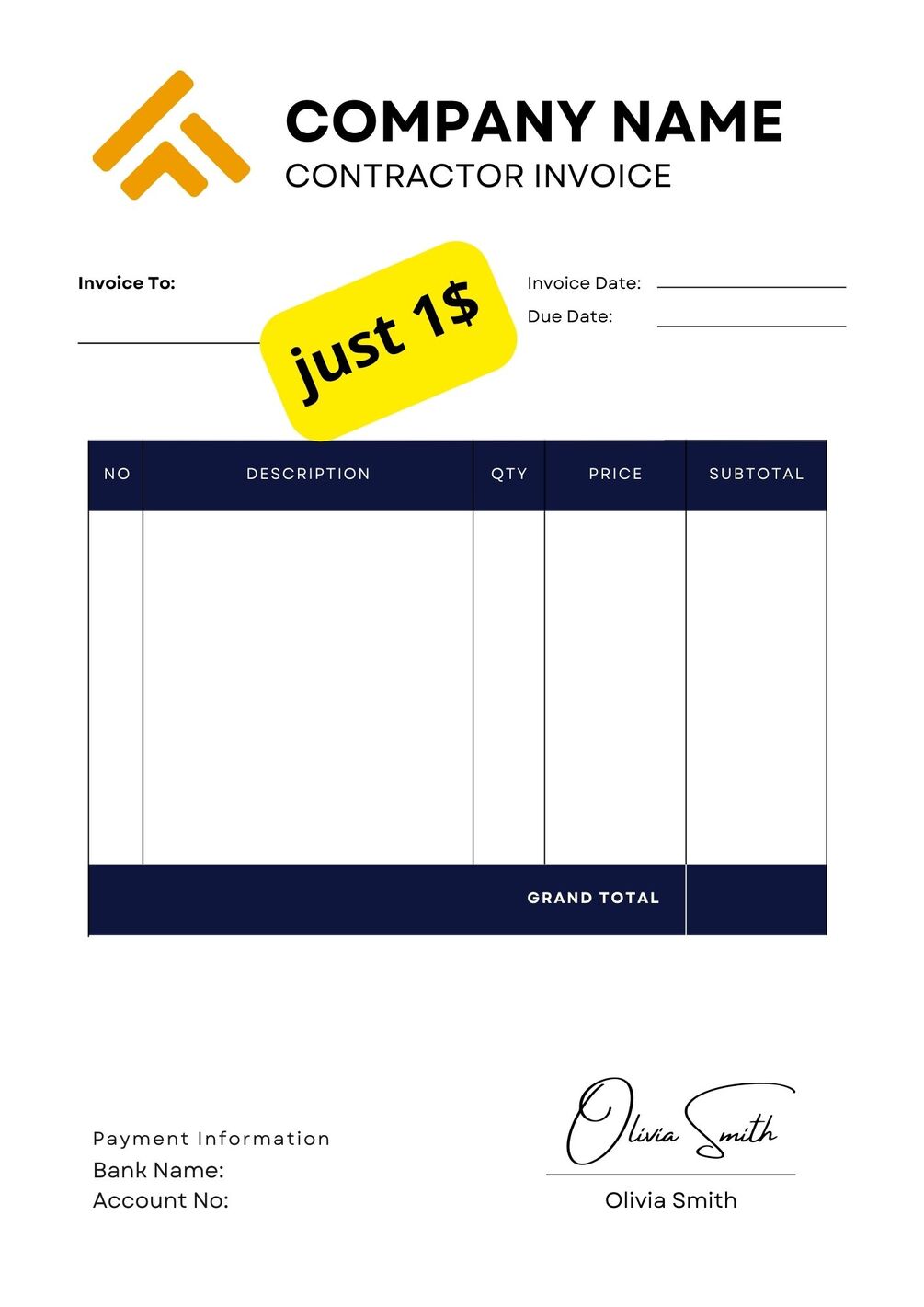 Modern Contractor Invoice (Printable)